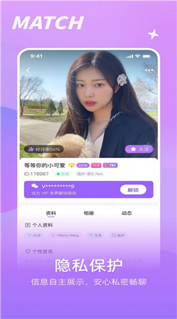 如胶app是一款很火爆的手机社交软件,让广大的单身人士可以快速的找到你喜欢的那个TA,系统会根据你的要求匹配到高质量异性,让你快速可以与对方联系,一对一真人私密聊天,还可以约线下一起约会哦,快来下载如胶吧。