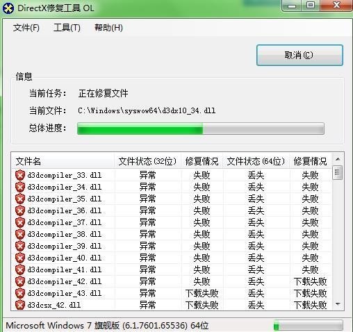 2、本程序为了应对一般电脑用户的使用,采用了易用的一键式设计,只要点击主界面上的检测并修复”按钮,程序就会自动完成校验、检测、下载、修复以及注册的全部功能,无需用户的介入,大大降低了使用难度。在常规修复过程中,程序还会自动检测DirectX加速状态,在异常时给予用户相应提示。