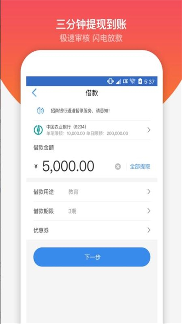 1. 闪电借款:快速贷款,线上自动化信审,快至2小时到账。