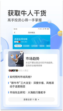 雪球股票app是一款金融管理应用,用户可以在这里看到每天最新的金融新闻。有各种理财产品可供购买,帮助用户出谋划策,收取地方佣金费用,还有定期的炒股大赛,赢取现金大奖。快来下载雪球股票app经验送给喜欢的朋友吧!