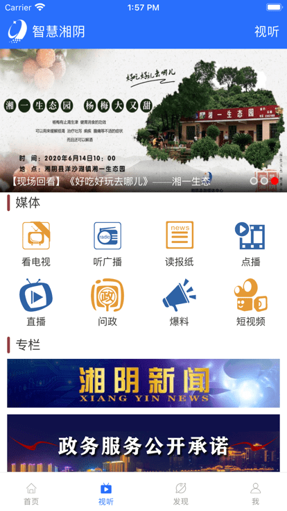 湘阴广播电视台官方手机客户端,以提供湘阴本地新闻图文直播、电视直播、广播直播、便民生活等全方位的城市生活应用的移动客户端产品。目前,包括乡镇快讯、学习教育、医疗卫生、阳光三农、党建服务等十二大板块。湘阴广播电视台及各大媒体的精品内容,进行各类突发事件的权威应急发布,通过个性化的精准推荐为广大市民提供全面城市生活资讯服务,成为湘阴千万市民“一手掌握湘阴”的公共服务传播平台。