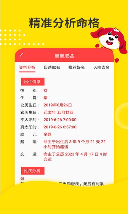 1.宝宝取名大师,根据五行喜用、三才五格、汉字释义、生肖喜忌、幸运数字、颜色等综合剖析