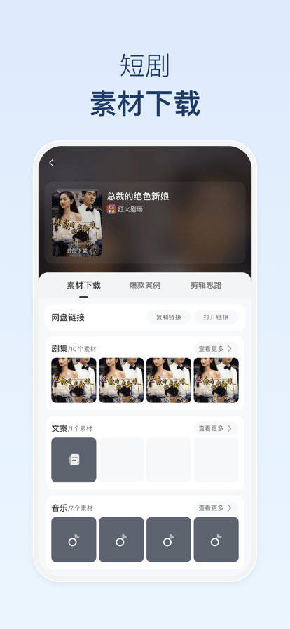 平台会提供短剧素材,将素材下载到电脑或者手机,导入剪辑软件。