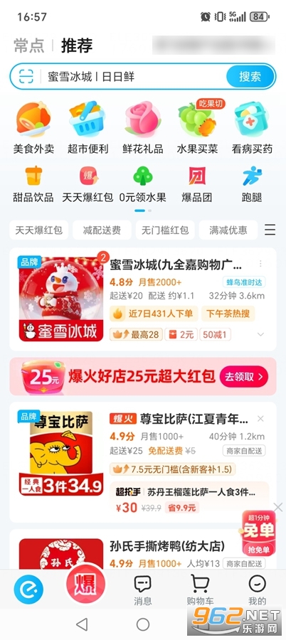 【全区域全品类】网罗周边各类外卖,中餐、西餐、快餐、简餐、火锅、烧烤、烘焙、汉堡、早餐、下午茶、夜宵、甜点、甜品、水果、鲜花、果蔬、生鲜、蛋糕、寿司、咖啡、超市购物……各类特价优惠套餐、满减折扣优惠、立减优惠套餐,便捷生活,一手掌握,尽在淘宝闪购!