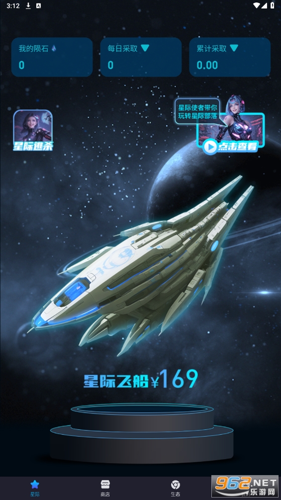 航行星际座舱,我们的使者在购买宇宙飞船后,可以组成一个团队去星际探索打陨石。
