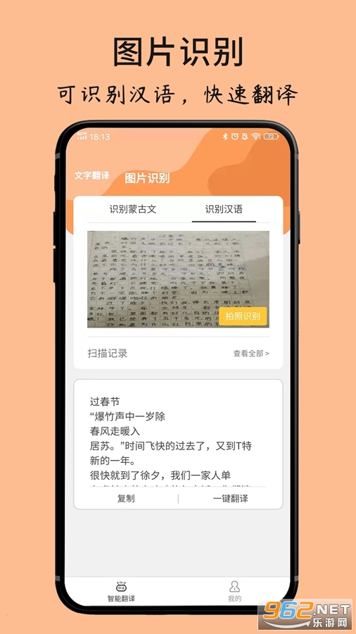 语音翻译:无需打字,对着说蒙古语,精准识别并翻译成中文。