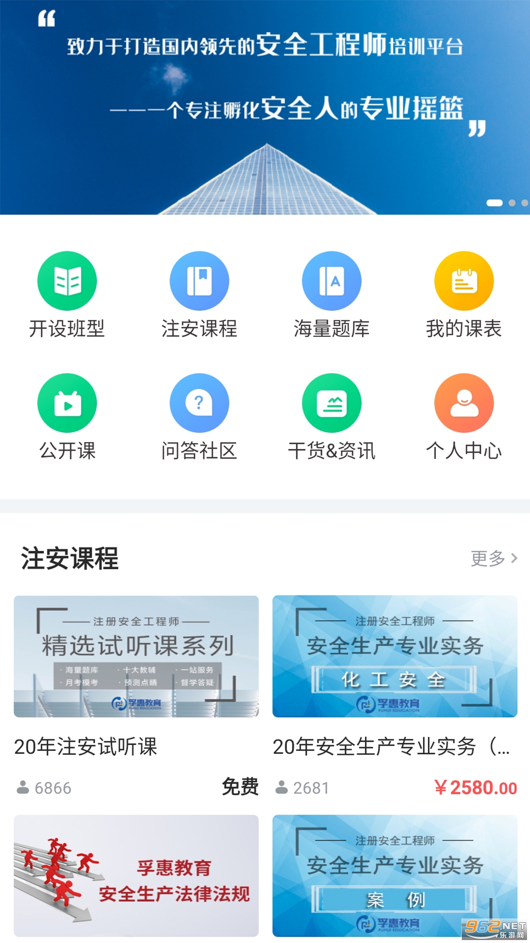 《孚惠教育app》给用户们带来了一款掌上的教育服务平台,大家可以在这款孚惠教育app中享受到优质的教育学习,让各位用户们可以通过孚惠教育app注册安全工程师,打造一款教育学习平台!