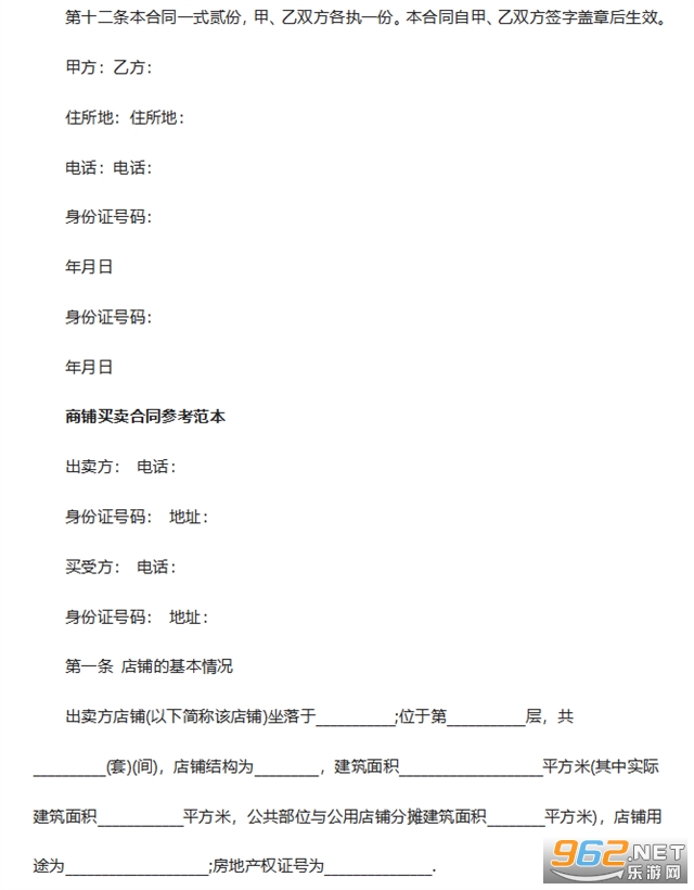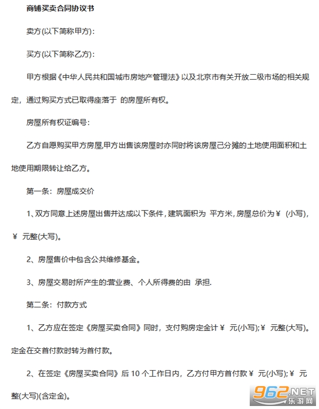 商铺买卖合同模板