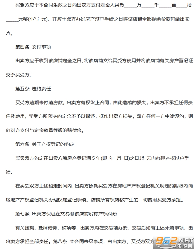 1、乙方已经对上述商铺的坐落、面积、质量等状况做了充分了解,自愿购买该商铺;