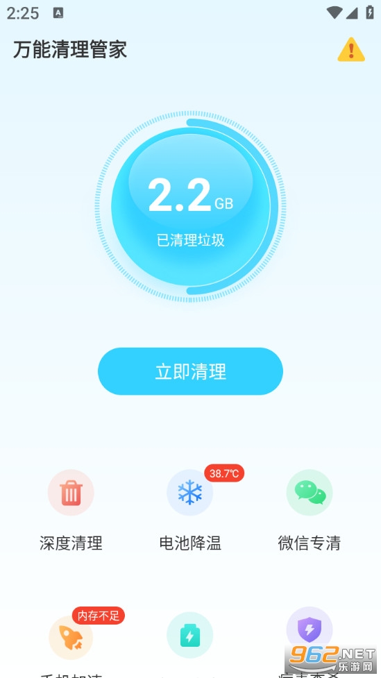 万能清理管家是手机的得力助手,软件操作简单、界面简洁,点击即可一键释放手机内存,让手机使用起来更加流畅舒适,即使是打游戏也不会卡顿,帮助手机还原如初,极大程度的延长手机使用寿命。
