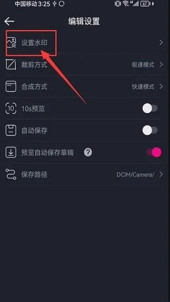 3、在“编辑设置”界面,点击“设置水印”,如图所示;