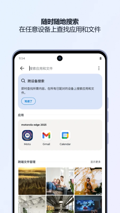 1、摩托罗拉超级互联安卓版下载可以轻松实现跨设备的数据同步,无论是照片、视频还是文档,都能在不同设备间自由流转,极大提高了工作效率和娱乐体验。