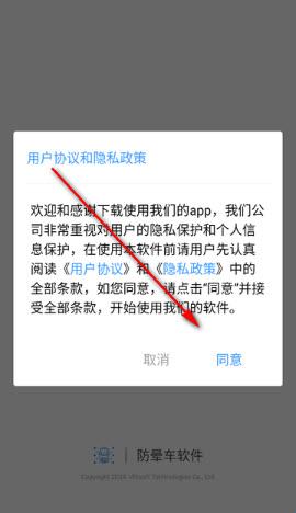 1、下载安装防晕车软件,之后打开,同意隐私政策;