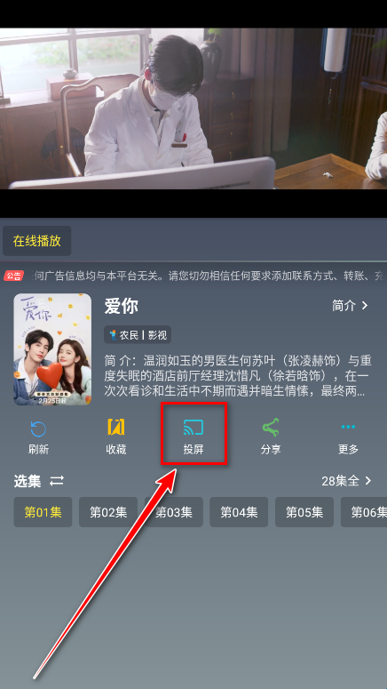 4、将我们的手机和电视处于同一个WiFi下,然后点击显示的设备名称,就可以开始投屏啦。