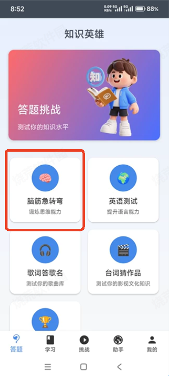 1、打开知识英雄,进入后选择“脑筋急转弯”