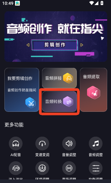 2、在软件首页界面找到找到“音频转换”按钮功能点击进入下一步操作