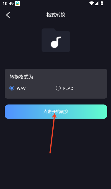4、然后进入到“格式转换”界面选择格式后,找到“点击开始转换”按钮进入下一步