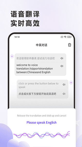 2、语音翻译:最新人工智能技术,高分辨率人声识别转为文字翻译!出国旅游/英语学习必备翻译助手。
