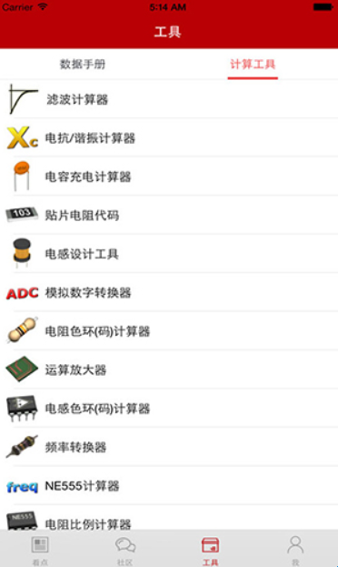 3、工具栏目,工程师可以查找datasheet和计算相关参数。