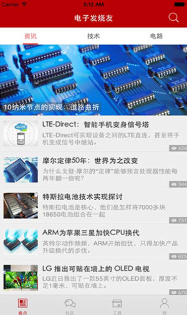 1、看点栏目,我们可以了解最新的电子行业资讯和技术方案。