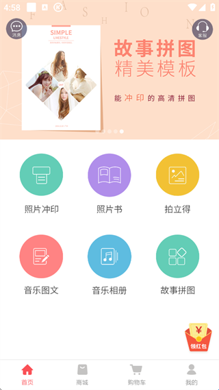 1、打开软件点击你要选择的功能,这边以【图片冲印】为例。