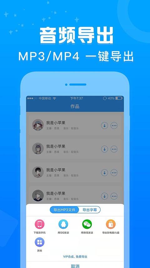 3、同步导出MP3和歌词文件,多平台分享至好友。