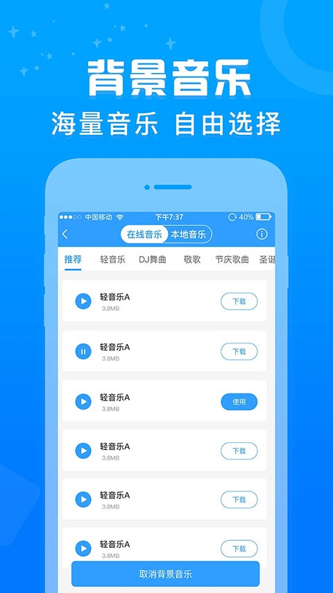 3、背景音乐:支持添加背景音乐;