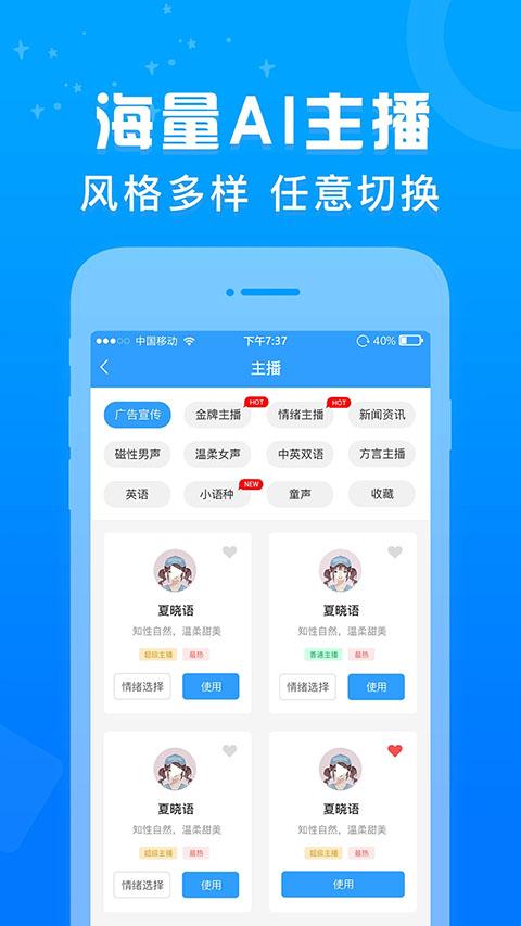 1、操作简单,中英文随意切换,多种发音人选择。