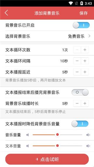 3、可以蓝牙连接外放设备进行播报,试音;
