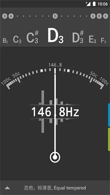 打开APP后,请确认界面右下角的Auto”按钮处于绿色亮起状态。验证方法很简单:对着手机麦克风轻声哼唱或拨动琴弦,若指针持续摆动,说明已成功进入自动侦测模式。不同版本界面略有差异,但关键在于确保AUTO”指示灯点亮。