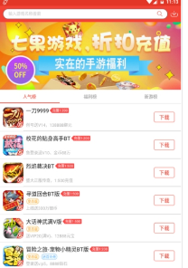七果手游是一款可以提供很多热门游戏的不同版本的手机平台,变态版和折扣版,并且每天会发放一些手游的礼包或者是道具等,玩家们们可以免费领取,是一款很有福利性质的手游盒子,欢迎大家下载。
