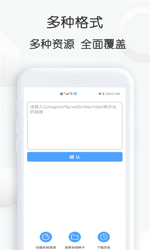 2、【资源搜索】支持电影、音乐、文档、图片、动漫等文件资源的搜索,不管是网络链接、bt种子搜索、磁力搜索,一键即可开启搜索,同时可以收藏至本地,资源无忧。