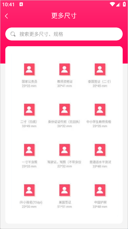 证件照相机可以帮你拍摄比较好看的证件照片,选择多种尺寸的照片直接上传照片切换照片背景,蓝底、白底、红底、全部都有,特殊尺寸的也会有,可以满足你对证件照的要求。您还可以简单的美颜,让证件照变得好看起来,还可以选择让软件帮你打印,全国都可以寄照片,我们不断地更新技术,优化体验,有需要的用户可以下载试试看!
