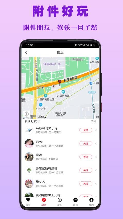 用户可以通过地理位置来实现附近交友,结识附近的陌生人来进行社交聊天