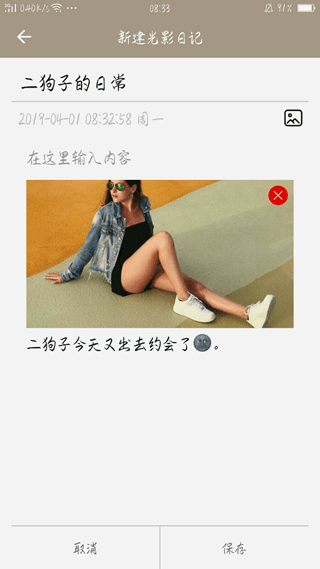 2、点击添加即可编写日记,日期和时间自动显示,编辑后也会自动更新;