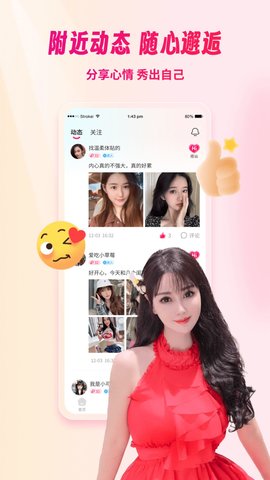 3、附近动态,随心邂逅,分享心情,秀出自己,实时查看动态信息。