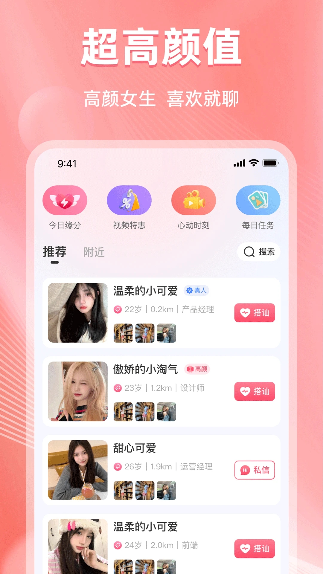 1、丰富多样的社交功能,包括私信聊天、视频通话、动态分享等;