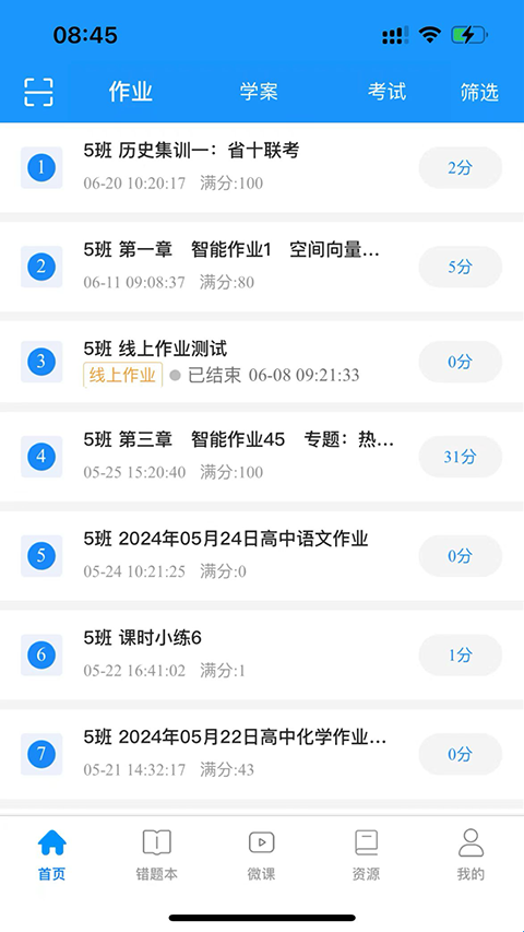 2、支持在线接收、提交作业(图片/文字/语音),教师可批改并反馈,学生可查看错题集及解析。