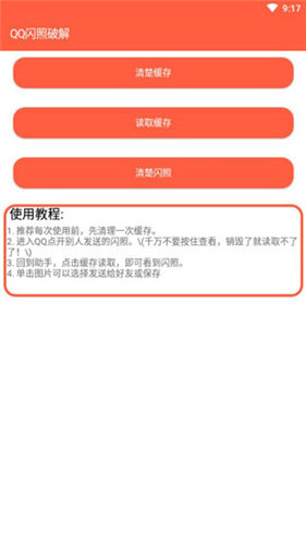 QQ闪照是一款能够快速帮助你保存、清理闪照图片的便捷助手!小编推荐给经常玩QQ的朋友,经常在QQ群里看到别的小伙伴发送闪照,奈何错过时间,经常没看成,现在来这里,随时轻松帮你解锁闪照,每个闪照都能直接观看哦,还可帮你加长闪照时间哦,实用性比较高!软件支持清除缓存,读取缓存和清除闪照三项功能,界面简洁大方,功能特殊强大,快速保存照片让闪照不在一瞬即逝,清理缓存一键恢复,让你从此不在错过任意一张闪照。还在等什么,软件能完美解锁图片查看限制,让您轻松保存别人给您发送的闪照照片!快来下载体验吧!