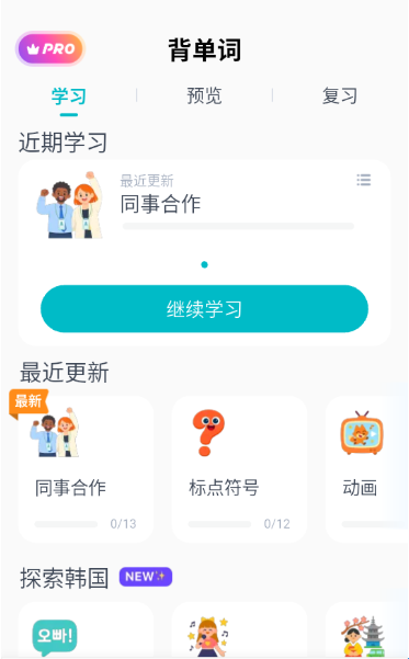 4、背单词:还提供了更多的韩语单词,用户可以进行游戏化背单词,随时背诵记忆单词。