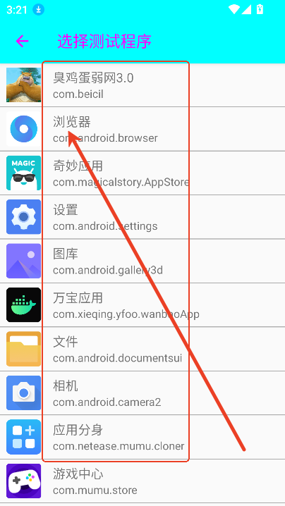 2、进入选择测试应用