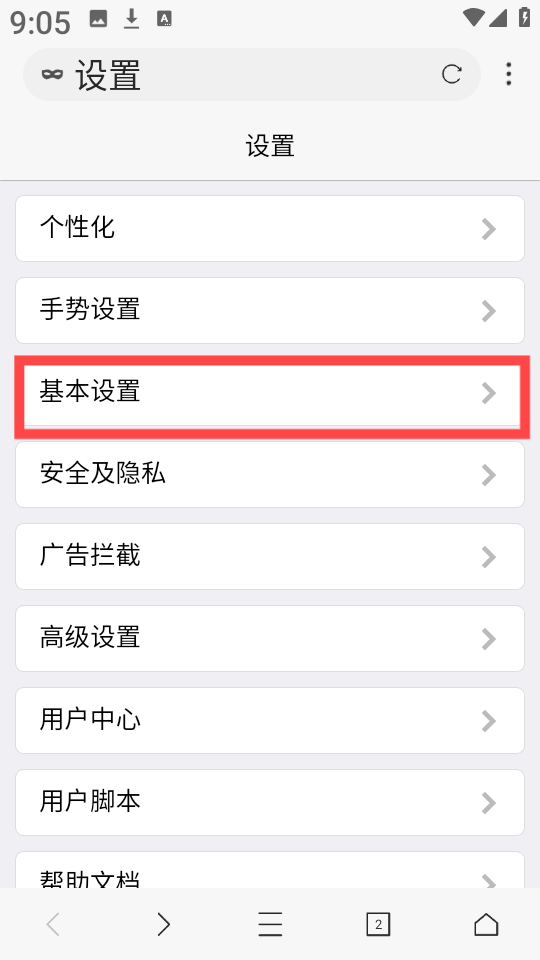 2、在设置列表中定位到基本设置”模块,并点击进入详细选项。