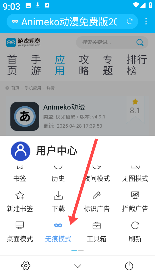 爱坤浏览器app怎么开启无痕模式浏览网页
