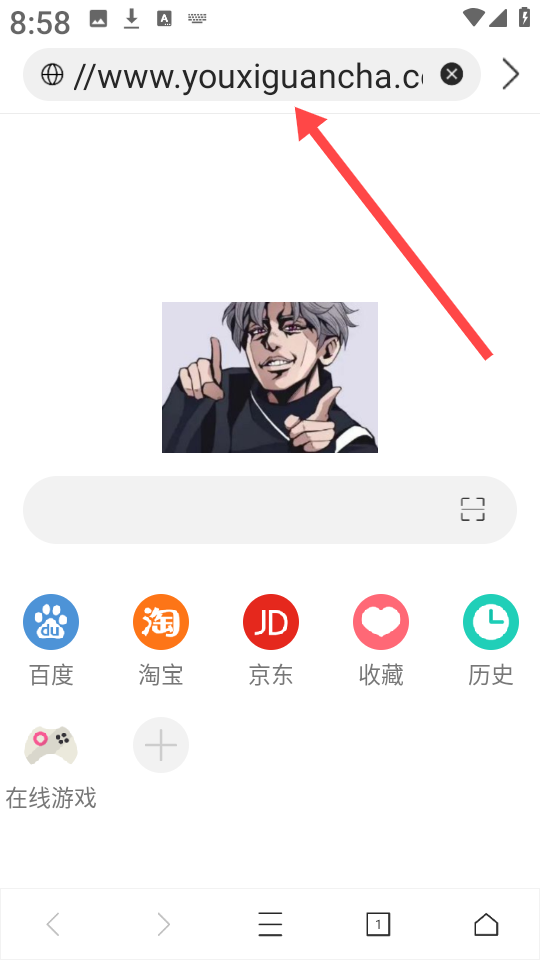 2、进入主界面后,在顶部搜索栏中准确输入网址链接,操作直观便捷,如图所示。