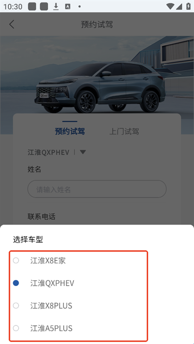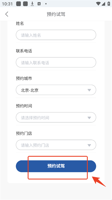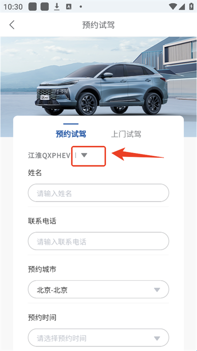 3、选择车型后根据要求来填写相关信息,填写完成后点击下方的“预约试驾”即可完成试驾预约