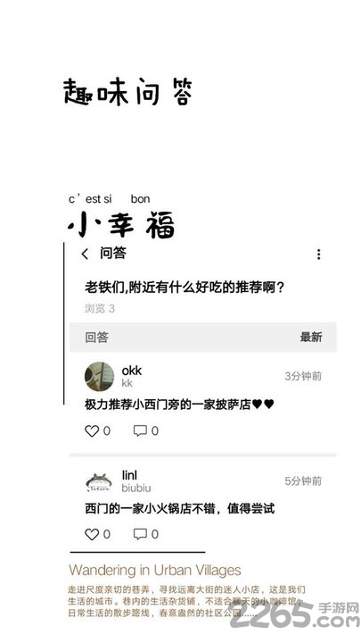 在应用中你可以分享和查看附近街区的生活动态,参与各式话题和问答,随时随地,发现不同角落的点滴精彩