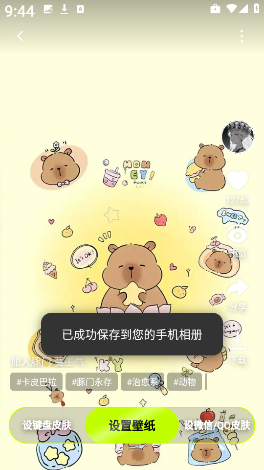 5、稍等片刻,屏幕上将弹出保存成功”的提示,壁纸已安全存入相册!