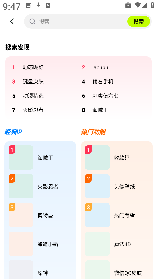 6、想更快找到心头好?直接在搜索框输入关键词(如赛博朋克”治愈系”Labubu”等),精准匹配你的审美偏好。