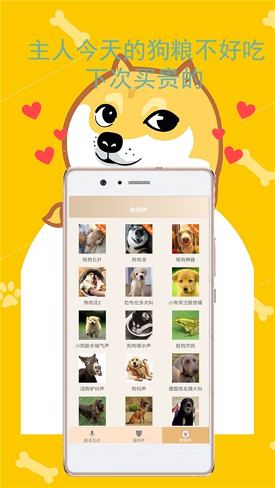 狗狗不愿意亲近主人,及时将你的声音转换为狗语,获取狗狗的注意力。
