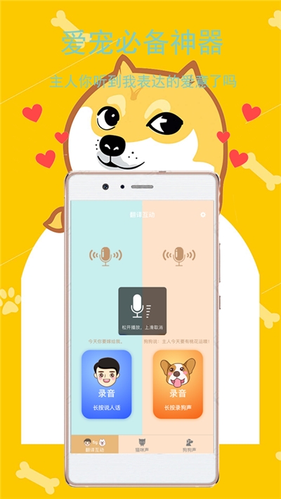 1、【人声翻译】将铲屎官的声音转化成狗语,让人狗交流更轻便。
